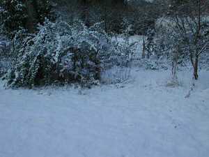 今朝の庭、一面真っ白。